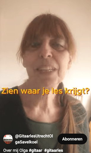 “Januari 2023 gitaarleerling ca. 50 jaar: “Ik heb al een tijdje je website bekeken en ben zo blij dat ik je eindelijk heb benaderd voor lessen.” Een paar maand later:”Ik zag iemand met een gitaar op zijn rug fietsen en dacht, je rijdt de verkeerde kant op, je moet naar gitaarles bij Olga!”